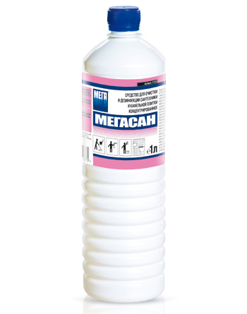 МЕГАСАН 1 литр, средство для очистки и дезинфекции сантехники и кафельной плитки концетрированное/12