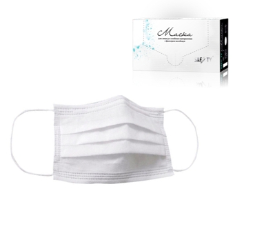 Маска 3-х слойная белая, одноразовая с фильтром мелтблаун SAFETY, комплект 50 штук в коробке