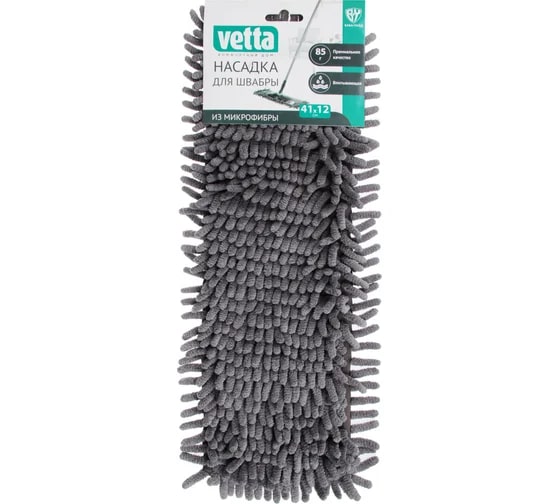 Моп Россия для швабры VETTA, ворсистая микрофибра, 40х10 см, серый 95гр 444-363